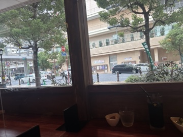 窓際席に座って