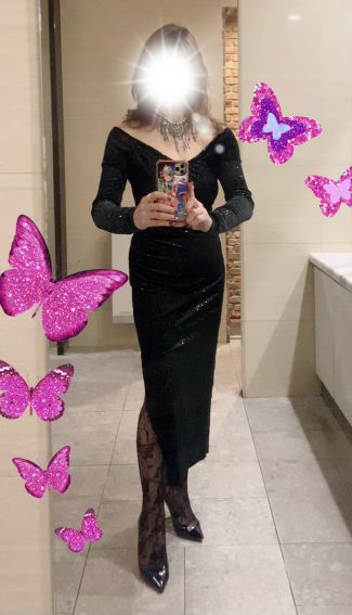 ダウンコート下は黒ミニワンピース、その下はボンテイーシ,黒のランジェリーにガーターつけて…😊💕💕