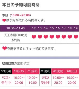 💓なかなかご予定決めにくいと思いますが、その時に予約して下さいね。