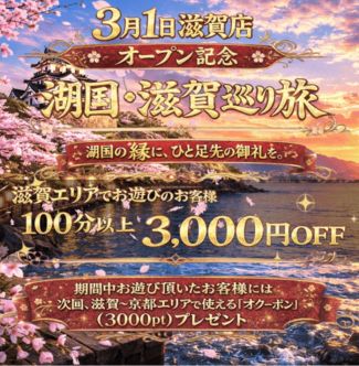 おはようございます♪ 03月16日 08:00 昨日は楽しい時間を ありがとうございます♪ 本日は昼職があるので 18:00〜出勤します。◕‿◕。 ☆まこ☆ お休みなさい♪ 03月03日 03:50 楽しい1日を ありがとうございます♪ お風呂でスッキリ☆ お休みなさい(^^) ☆まこ☆ お誘い待ってます❤️ 03月02日 16:30 こんにちわ♪ 本日も24:00まで出勤してます。 お誘い待ってます(◠‿◕) ♪まこ♪ 一緒に、お風呂で温まろ♨️ 02月28日 20:00 こんばんわ💕 昼間は暖かかったのに 夜は冷えますね😟 一緒に温まりたいなぁ♥️ ????まこ???? 湖国・滋賀巡り旅 開催♥️ 02月28日 19:15 3月1日滋賀店 オープン記念 湖国・滋賀巡り旅 開催 開催期間:3/1~3/15 ※期間中お遊びされた 全ての紳士様が ご参加可能♪ ※勿論も参加費は無料です❤️ 100分以上のご利用で 全コース3,000円OFF さらになんとダブル特典付き! 期間中で遊んで頂いたお客様には 3/16~4/15の期間中 滋賀もしくは京都エリアで1回使える 「3,000OFFおクーポン」配布💕 ※期間中1回限定のイベントです ※ご予約時に「滋賀巡り旅」と お伝えくださいね♥️ 紳士様のご参加お待ちしております❤️ ????まこ???? 17:00〜出勤します 02月26日 12:10 おはようございます😊 早いもので2月も あと少しで終わりです♪ 早く暖かくなるとイイな 本日は17:00〜出勤します♪ 仲良くしてくれると とっても嬉しいです ????まこ????