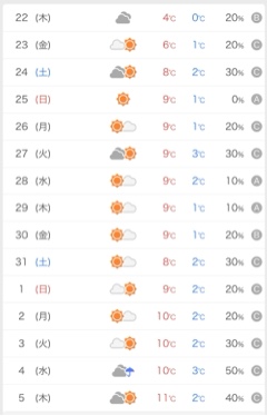 今日からまた、冬へと逆戻りですね