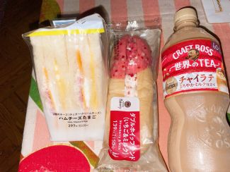 おにぎり2つを5分で平らげた
