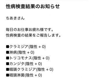 性病検査の結果が出ましたので