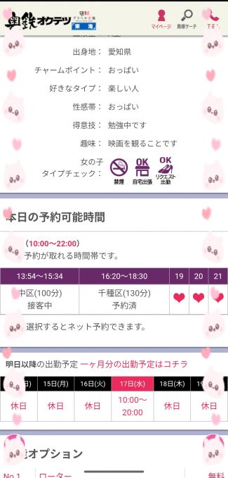✧*。本日16:20よりご予約頂きましたお兄様、奥鉄初めてのご乗車になつめを選んでくれてありがとうございます❣️