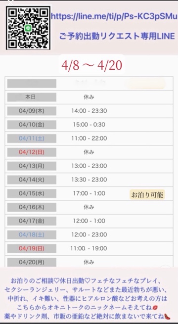 本日11:00〜出勤します✨