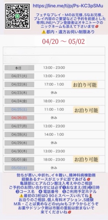 出勤日以外でリクエストの相談などありましたら、お気軽に聞いてください😊 りの