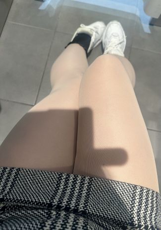 白色スニーカー×黒色靴下×ベージュ色パンスト♪