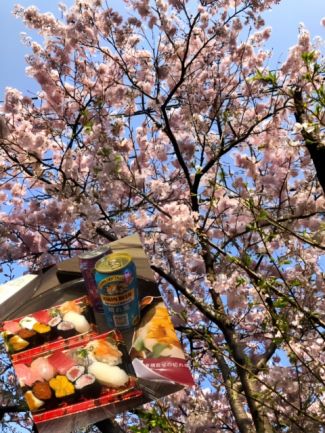 建物が…日中は桜の🌸花満開で