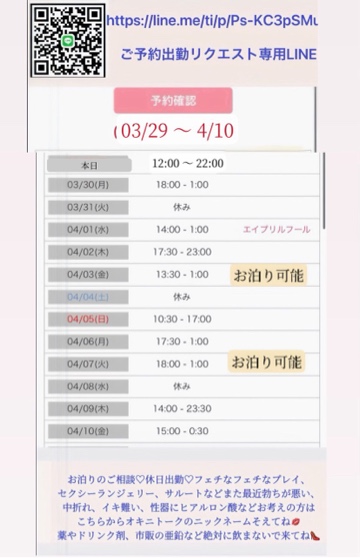 先日の日記で4月の出勤日をお伝えした件なのですが、女の子の日のことを失念しておりました💔