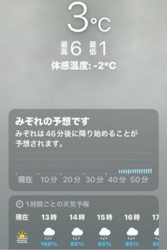 本日最高気温6℃、明日は1℃