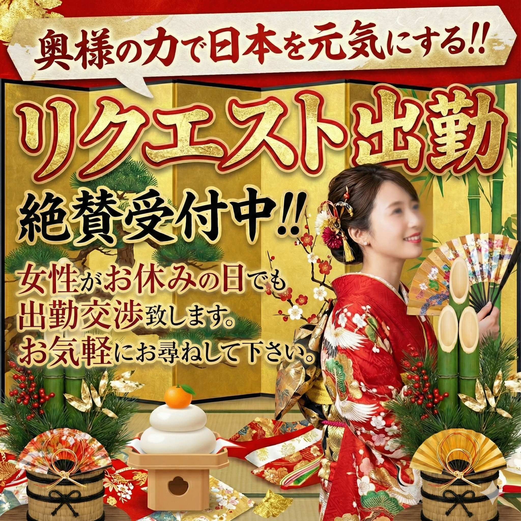 ●女性の始発に併せてスタート時間を調整させて頂く場合や、別途タクシー代をご負担頂きます場合が御座いますのでご了承くださいませ。