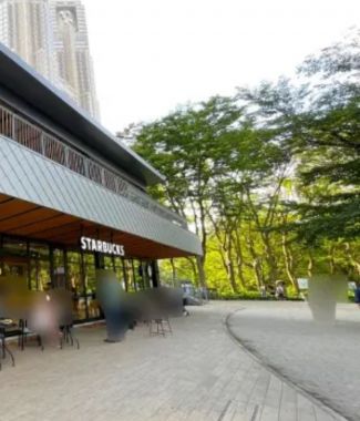 某“スターバックス”で自然の中で、