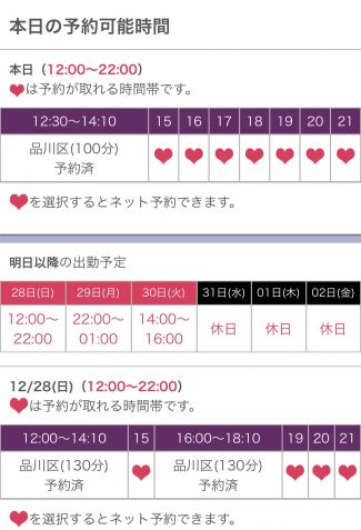 次回29日16時30分~18時40分まで空きあります♡