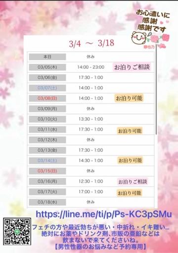 明日3月5日昼過ぎから乗車します🌸是非エッチなお誘い💕お待ちしています♡