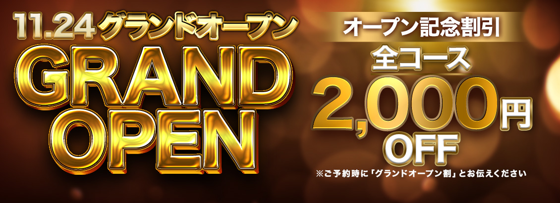 • ◆ オープン記念割引! 全コース2,000円OFF ◆