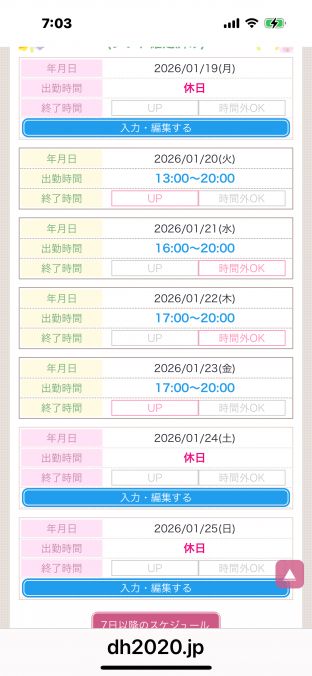 水曜から出勤時間が短めになっておりますが、ご希望の時間がございましたらご相談下さいね。対応させて頂きます