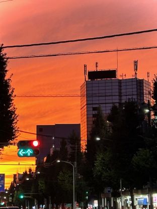 空がオレンジ色してました