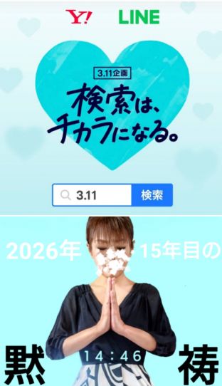 それに協力できる 毎年3.11(0:00〜23:59)にLINEとYahoo画面から "3.11"と入力し検索ボチっとかけると