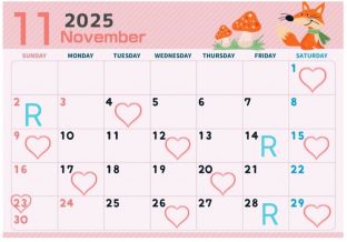 11月の出勤予定です(Rはリクエスト可能日です)。