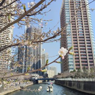 いい天気なので五反田の目黒川沿いでお花見しています