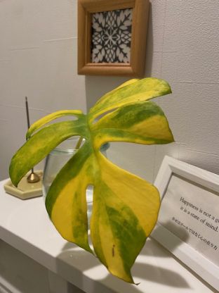 ポイントは、枯れてとれかかっていた大事なリビングのヒメモンステラの葉です。この瞬間しか出せない黄色と緑のコントラストがお気に入りです☺️