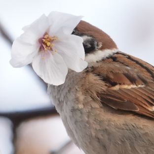 (桜で顔隠しチュン 可愛いね)